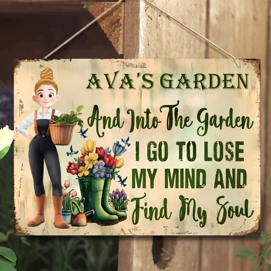 Garden Sign And Into the Garden I Go To Lose My Mind And Find My Soul 2 - Personalized Horizontal Metal Sign - Gift For Garden Lovers