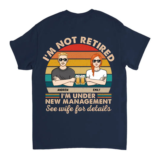 I Am Not Retired I'm Under New Management See Wife For Details Couple - Funny Retirement Gift - Personalized Custom T-Shirt, Sweatshirt, Hoodie