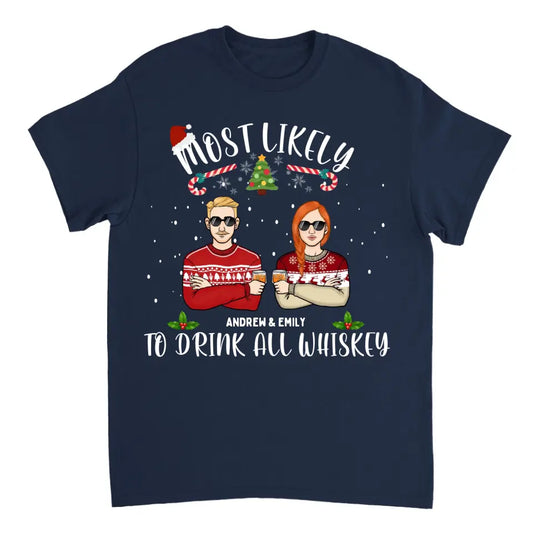 Most Likely To Drink All Whiskey - Personalized Unisex T-shirt, Hoodie, Sweatshirt - Christmas Gift