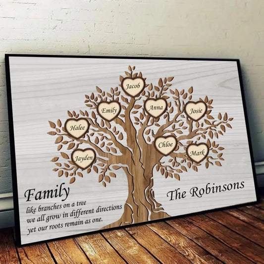 Árbol genealógico - Lienzo horizontal personalizado - Regalo para madre, mamá, miembros de la familia