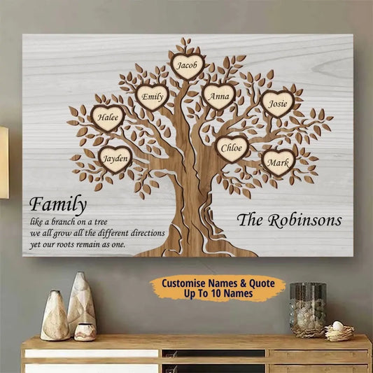 Family Tree - Personalized Horizontal Canvas - Gift For Mother, Mom, Mum, Family Members