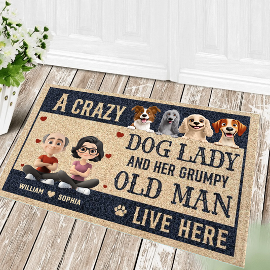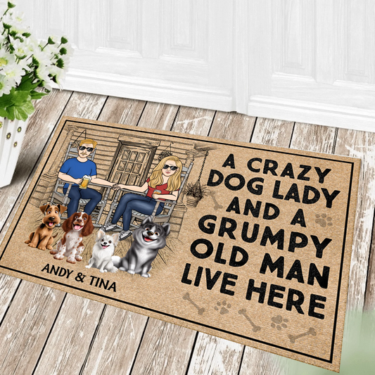 A Crazy Dog Lady And Her Grumpy Old Man Live Here - Personalized Custom Doormat