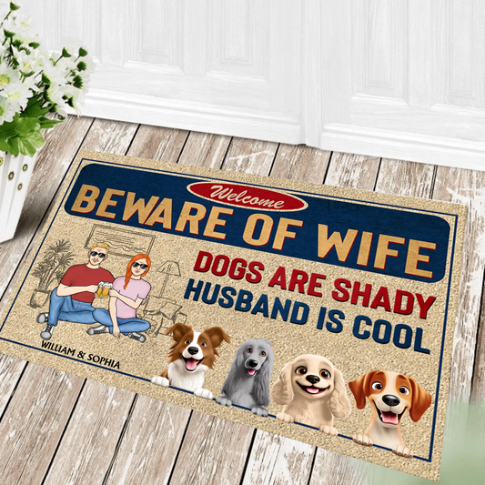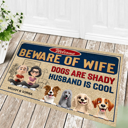 Beware Of Wife, Dogs Are Shady And Husband Is Cool - Personalized Custom Doormat
