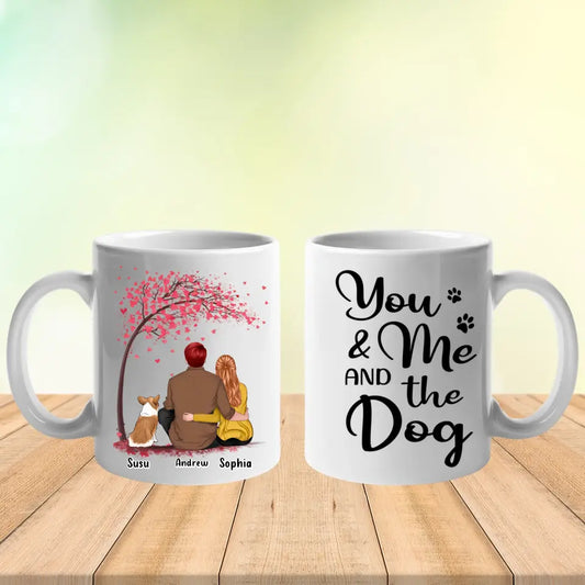 You, Me and The Dogs With Tree - Personalized Custom Mug - Gift For Couple, Dog Lovers