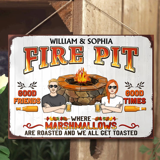 Fire Pit Where Marshmallows Get Toasted- Personalized Horizontal Metal Sign - Gifts For Couple, Family