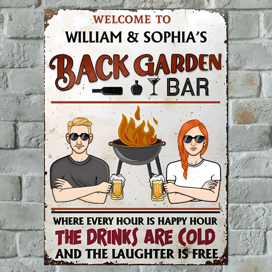 Back Garden Bar Where Every Hour Is Happy Hour - Personalized Custom Classic Metal Signs