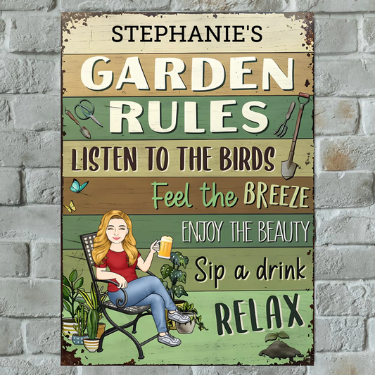 Garden Rules Listen To The Birds - Personalized Vertical Metal Sign