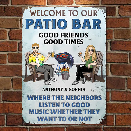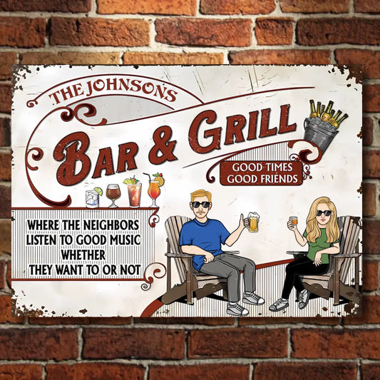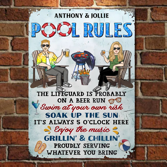 Poolside Grilling Listen To The Good Music Couple Husband Wife - Personalized Vertical Metal Sign