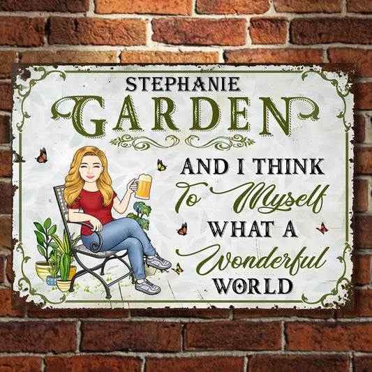 And I Think To Myself What A Wonderful World - Garden Sign - Personalized Horizontal Metal Sign