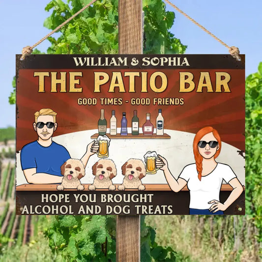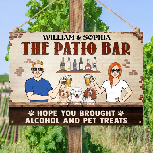 Hope You Brought Alcohol And Dog Treats Couple Husband Wife - Backyard, House Warming Gift For Pet Owners, Pet Lovers - Personalized Classic Metal Signs