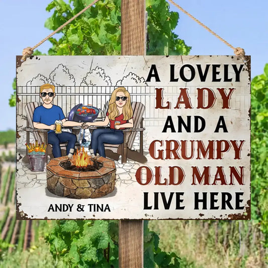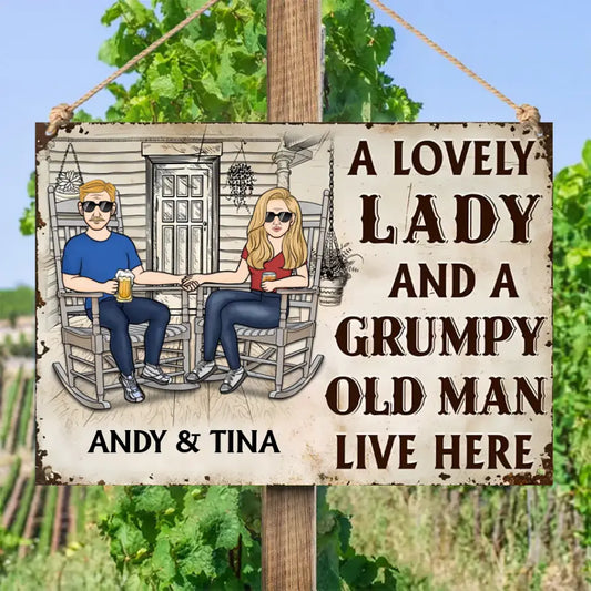 Couple A Lovely Woman And A Grumpy Old Man Live Here 2 - Personalized Horizontal Metal Sign