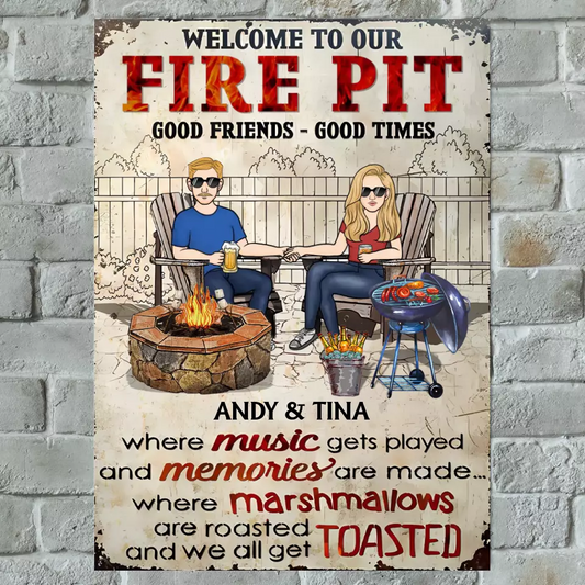 Fire Pit Where Music Gets Played And Memories Are Made - Personalized Metal Sign