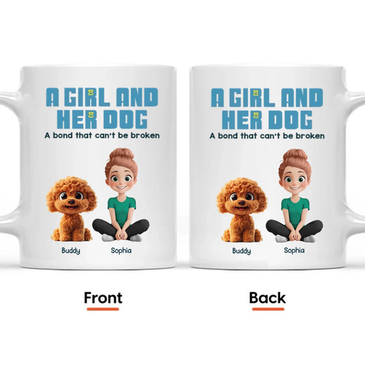 A Bond Between Girl And Dog Can't Be Broken - Personalized Ceramic Mug - Gift For Dog Lovers