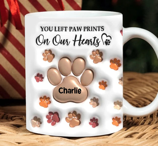 You Left Paw Prints On Our Hearts - Personalized 3D Inflated Effect Printed Mug - Gift For Dog Lovers, Pet Lovers