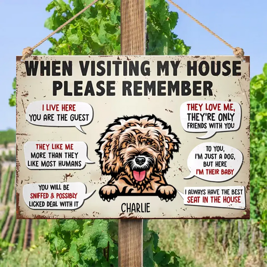 Bitte denken Sie daran, wenn Sie unser Haus besuchen – personalisiertes Hunde-Metallschild