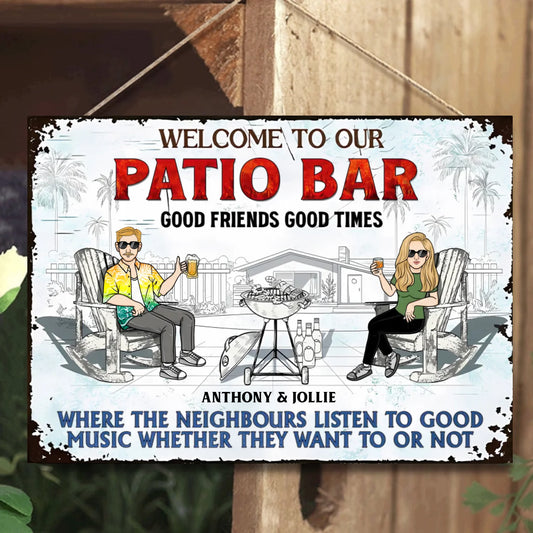 Poolside Grilling Listen To The Good Music Couple Husband Wife Version 2 - Backyard Sign - Personalized Custom Classic Metal Signs