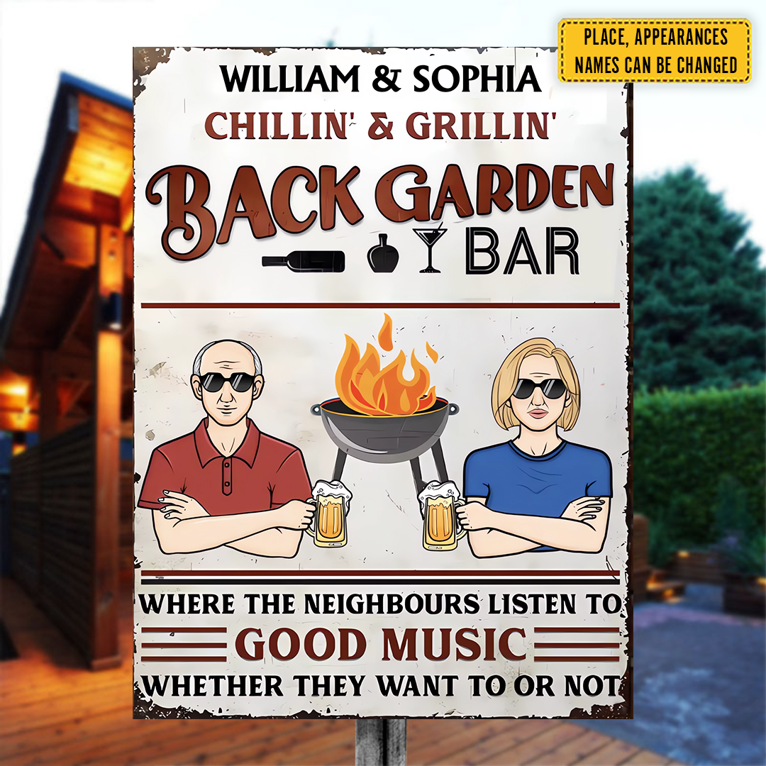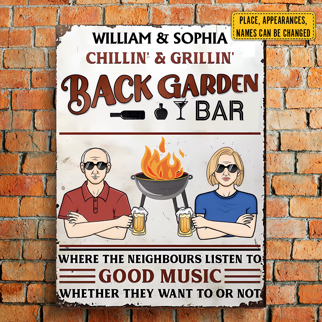 Back Garden Bar Grilling Listen To Good Music - Personalized Custom Classic Metal Signs