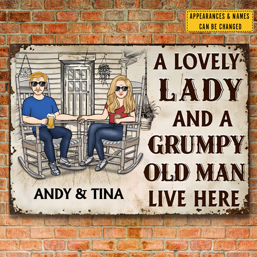 Couple A Lovely Woman And A Grumpy Old Man Live Here 2 - Personalized Horizontal Metal Sign