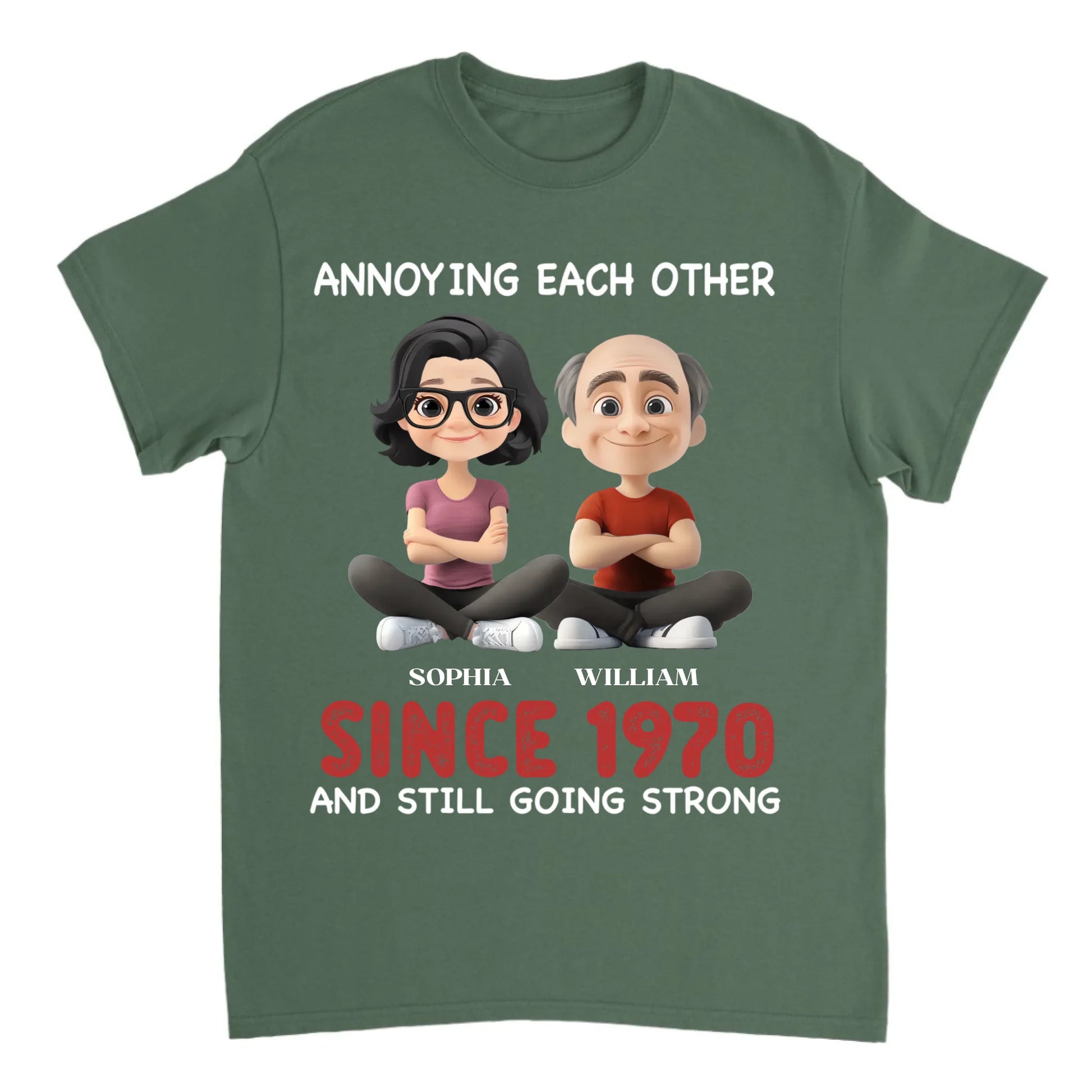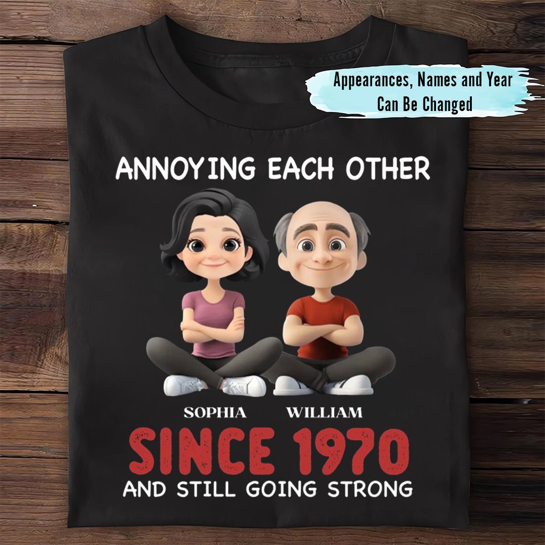 Who says true love is all roses? 🌹😂 This personalized couple T-shirt proves that the secret to a strong relationship is… expertly annoying each other for decades!