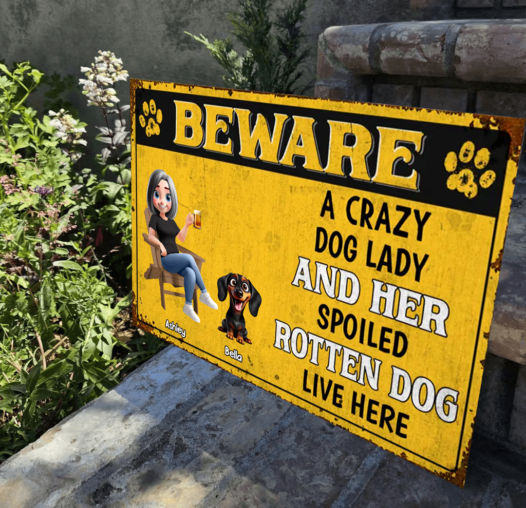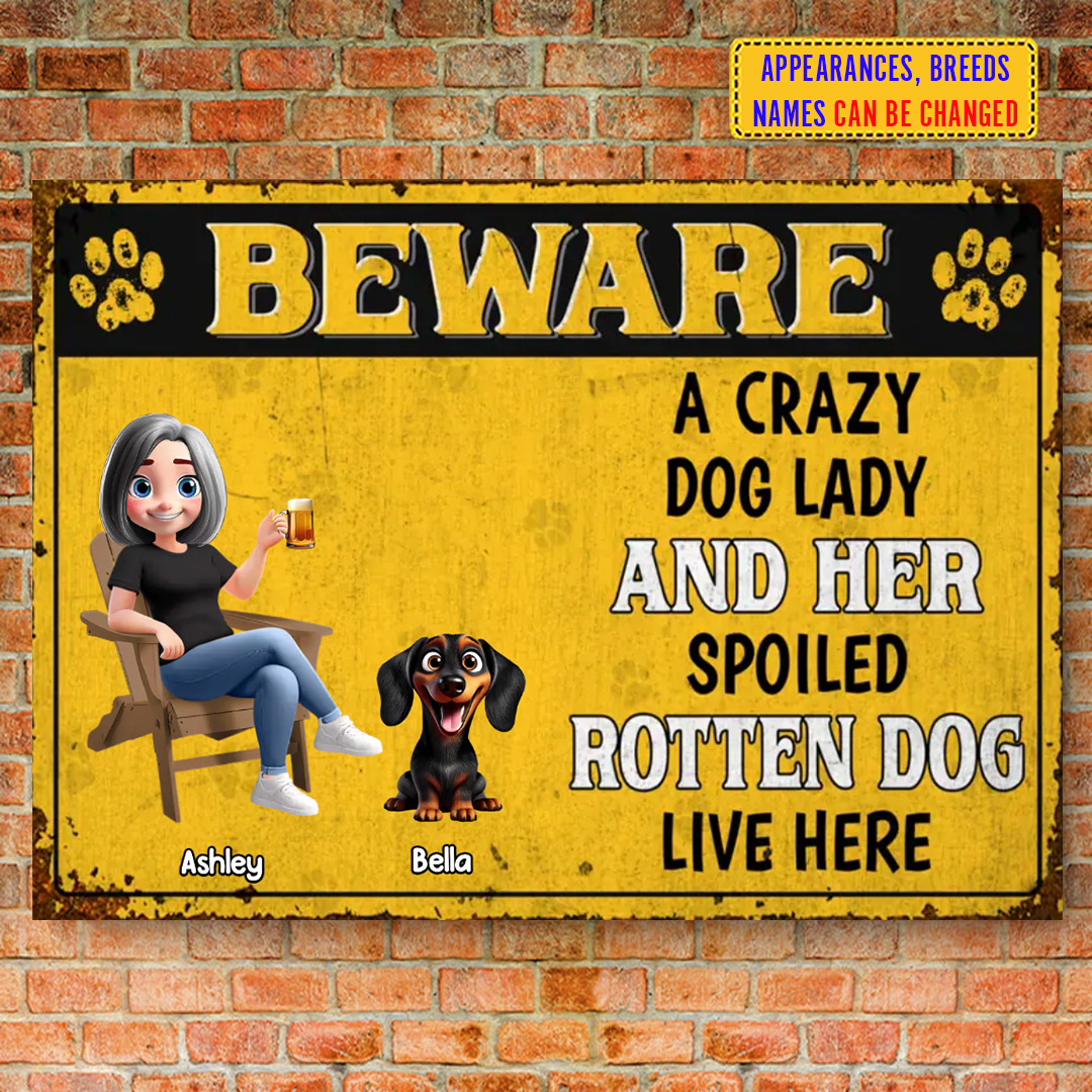 Crazy Dog Lady & Her Spoiled Rotten Dogs Live Here - Personalized Horizontal Metal Sign - Gift For Dog Lovers