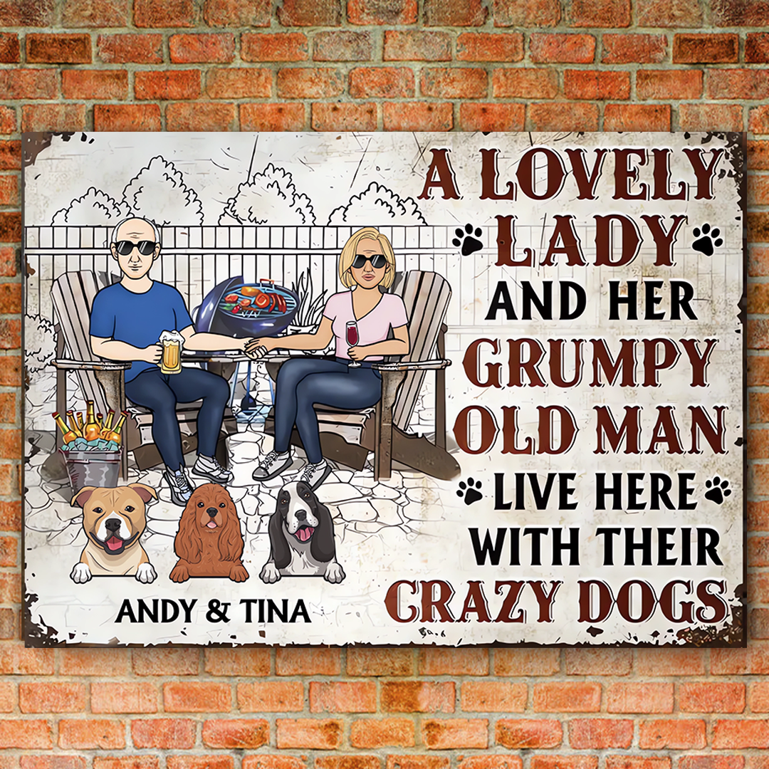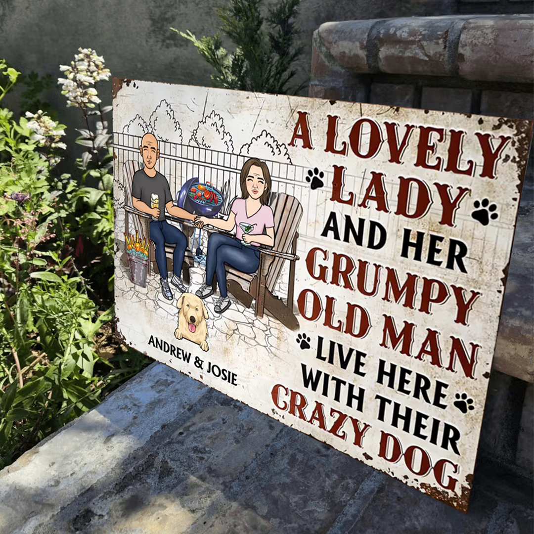 Dog Couple A Lovely Lady And A Grumpy Old Man Live Here - Personalized Metal Sign