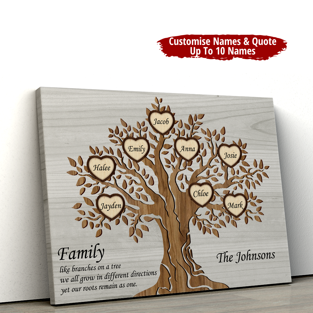 Family Tree - Personalized Horizontal Canvas - Gift For Mother, Mom, Mum, Family Members