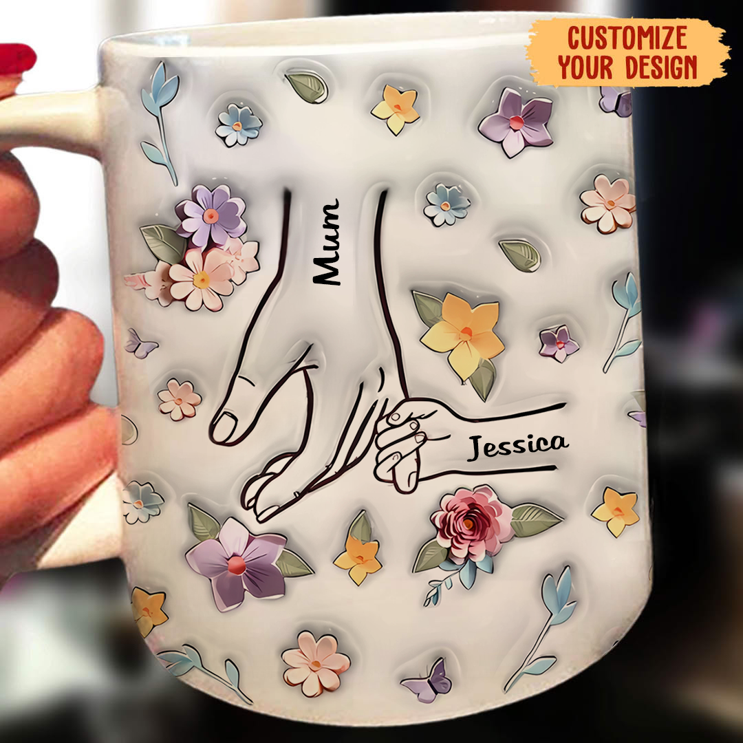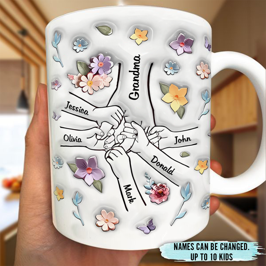 My Hand And My Heart Are Both In Your Care - Family Personalized Custom 3D Inflated Effect Printed Mug - Mother's Day, Gift For Mom, Grandma
