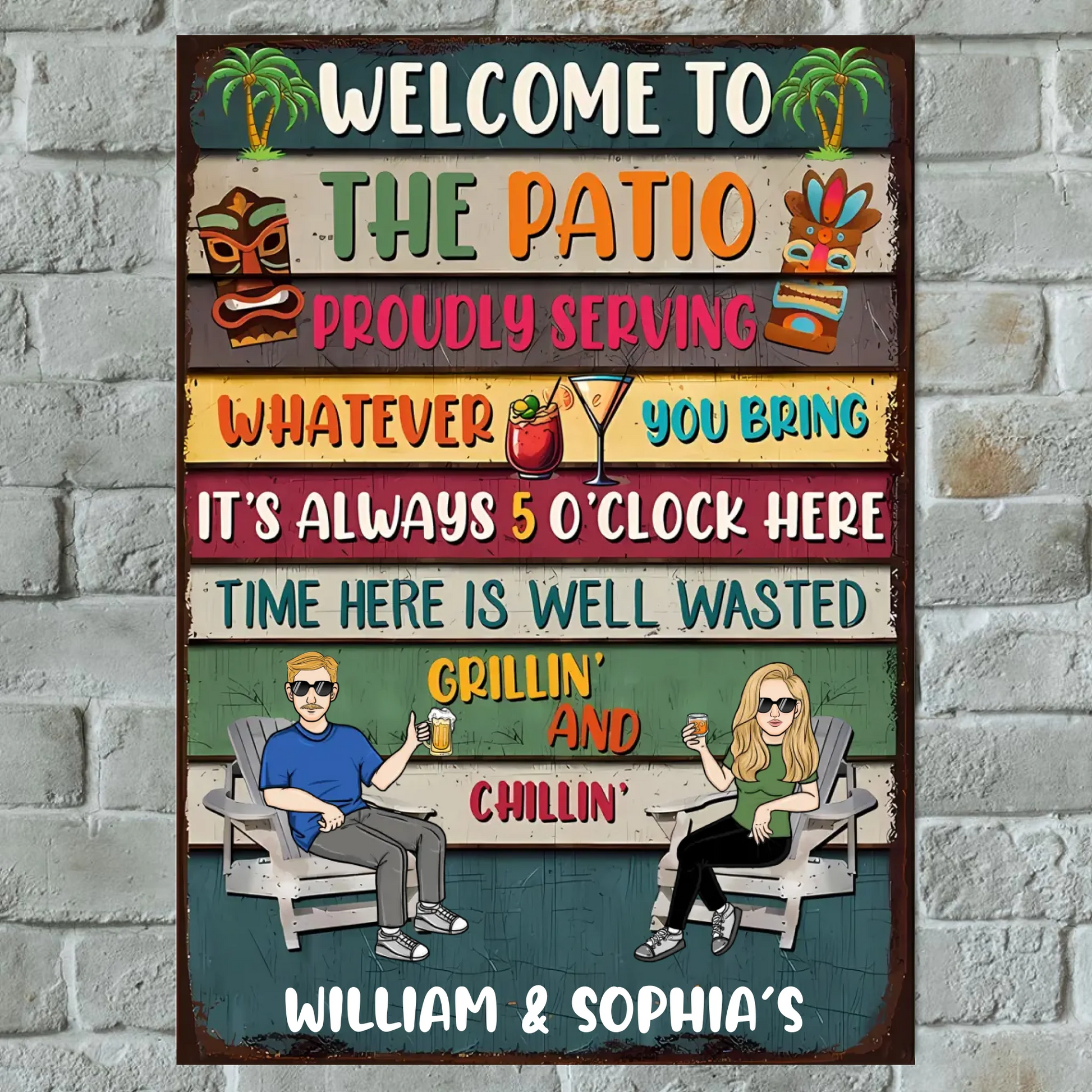 Patio Grilling Proudly Serving Whatever You Bring - Personalized Vertical Metal Sign - Gifts For Husband Wife, Couples