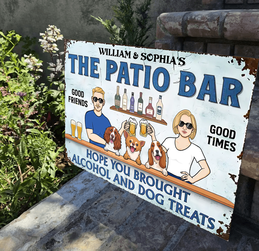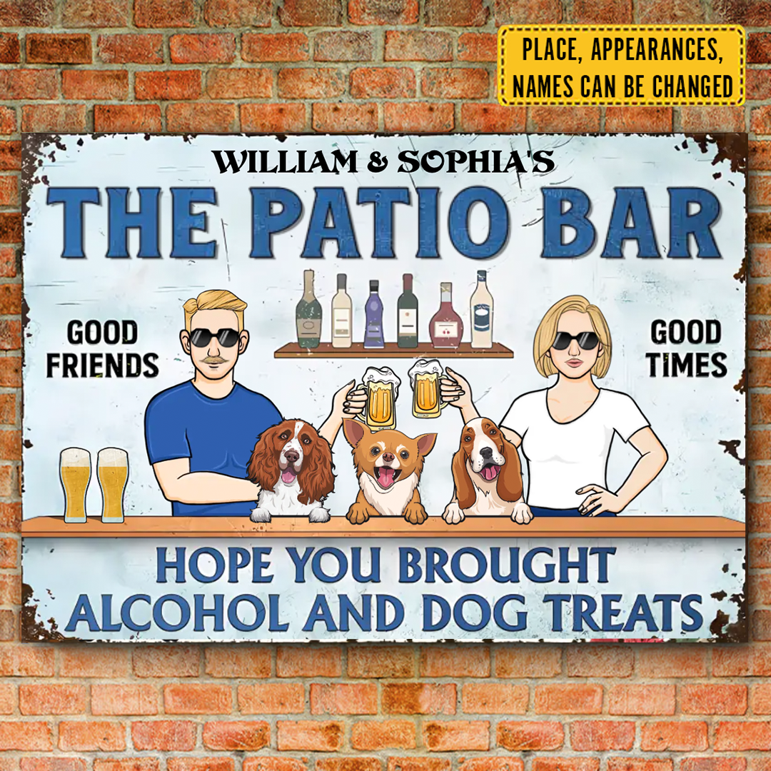 The Patio Bar Hope You Brought Alcohol And Dog Treats 2 - Personalized Horizontal Metal Sign