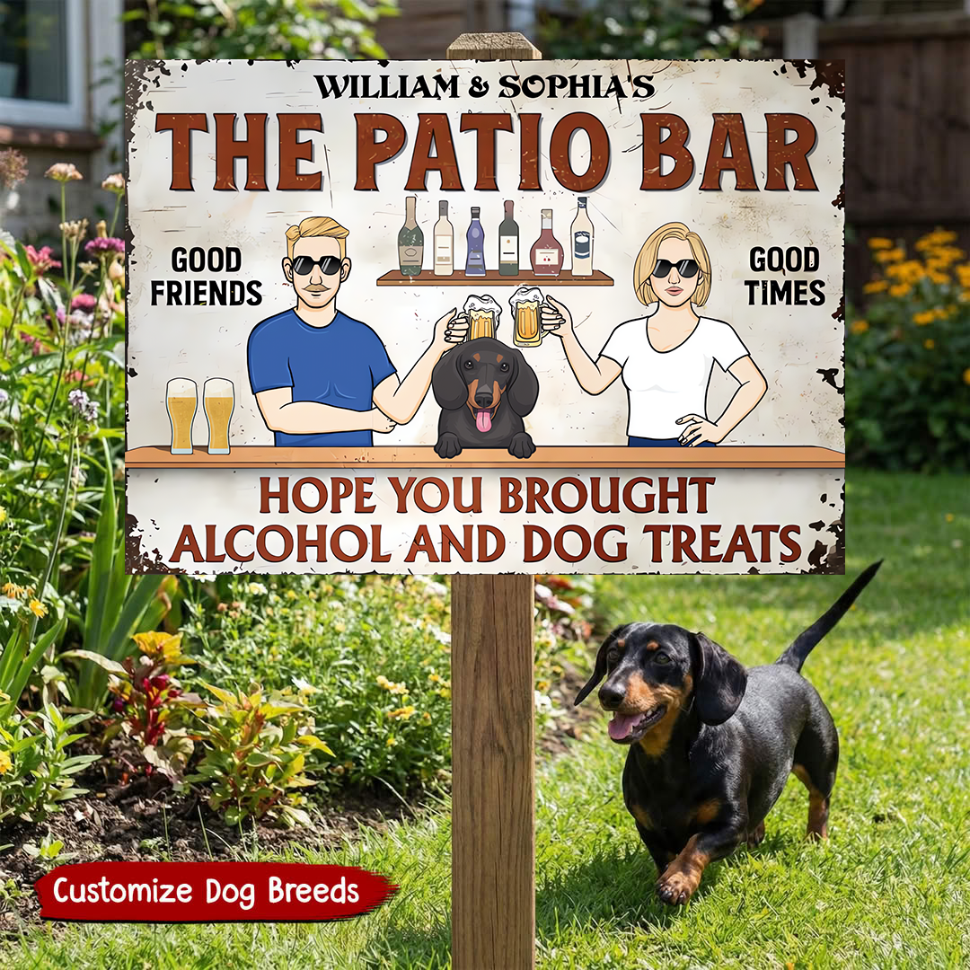 The Patio Bar Hope You Brought Alcohol And Dog Treats - Personalized Horizontal Metal Sign