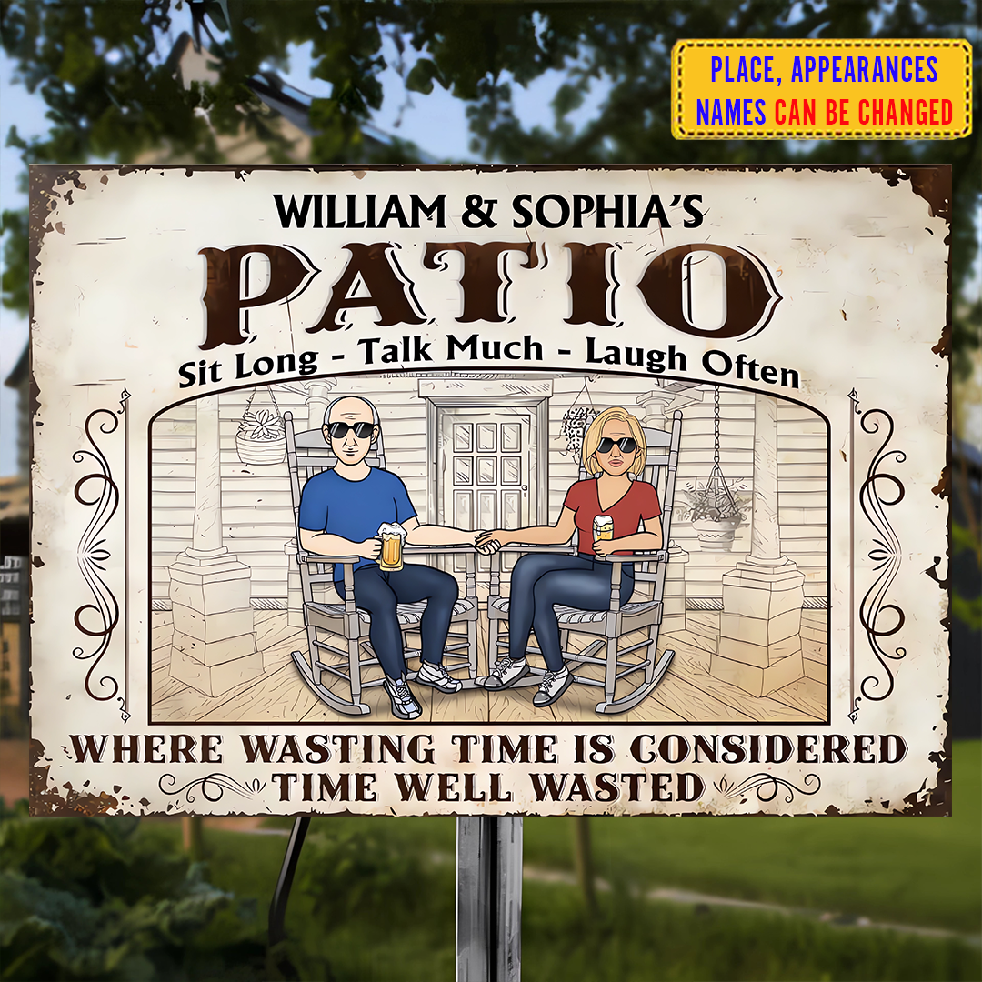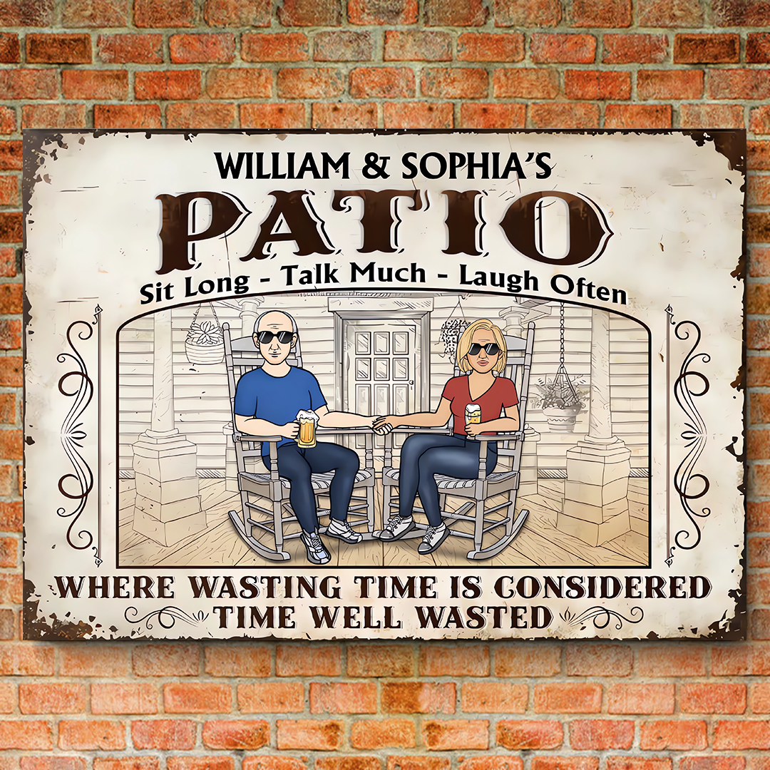 The Patio Where Wasting Time Is Considered Time Well Wasted - Personalized Horizontal Metal Sign