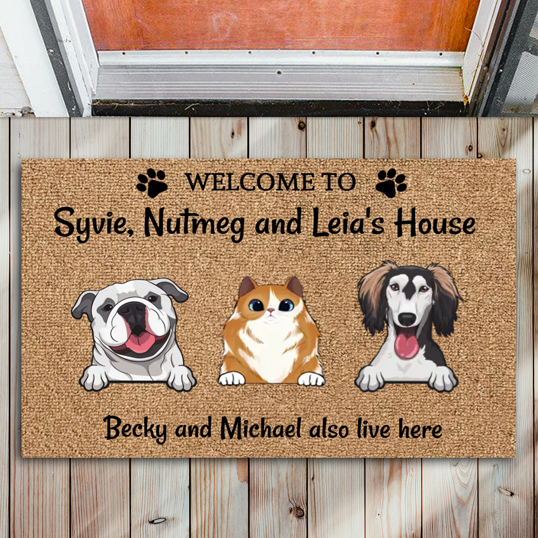 Welcome To Our Home Human Just Live Here - Personalized Pet Doormat, Dog Cat Doormat