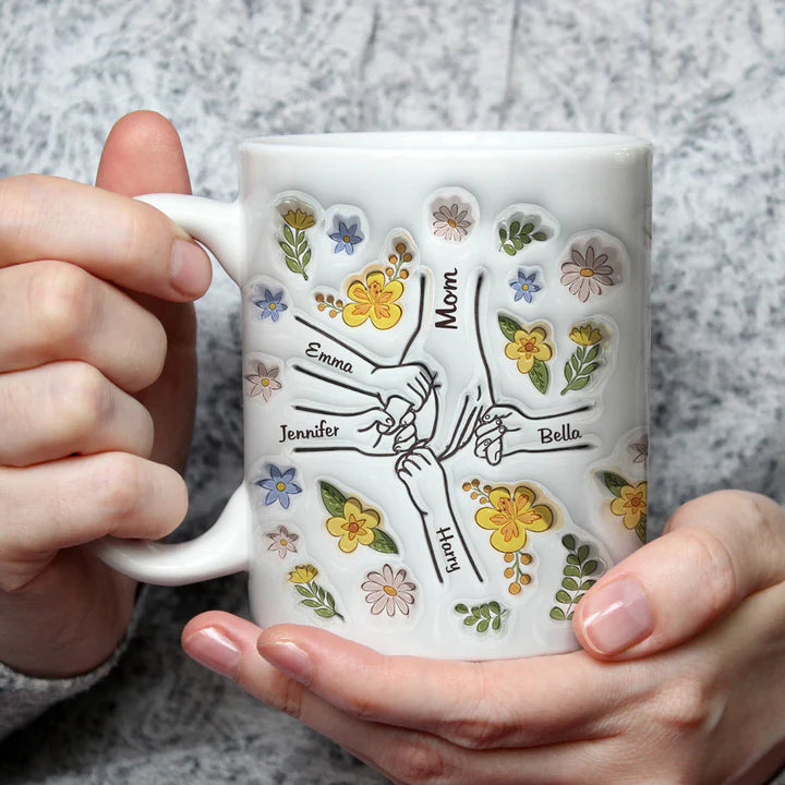You Hold Our Hands And Touch Our Hearts - Family Personalized Custom 3D Inflated Effect Printed Mug - Gift For Mom, Grandma
